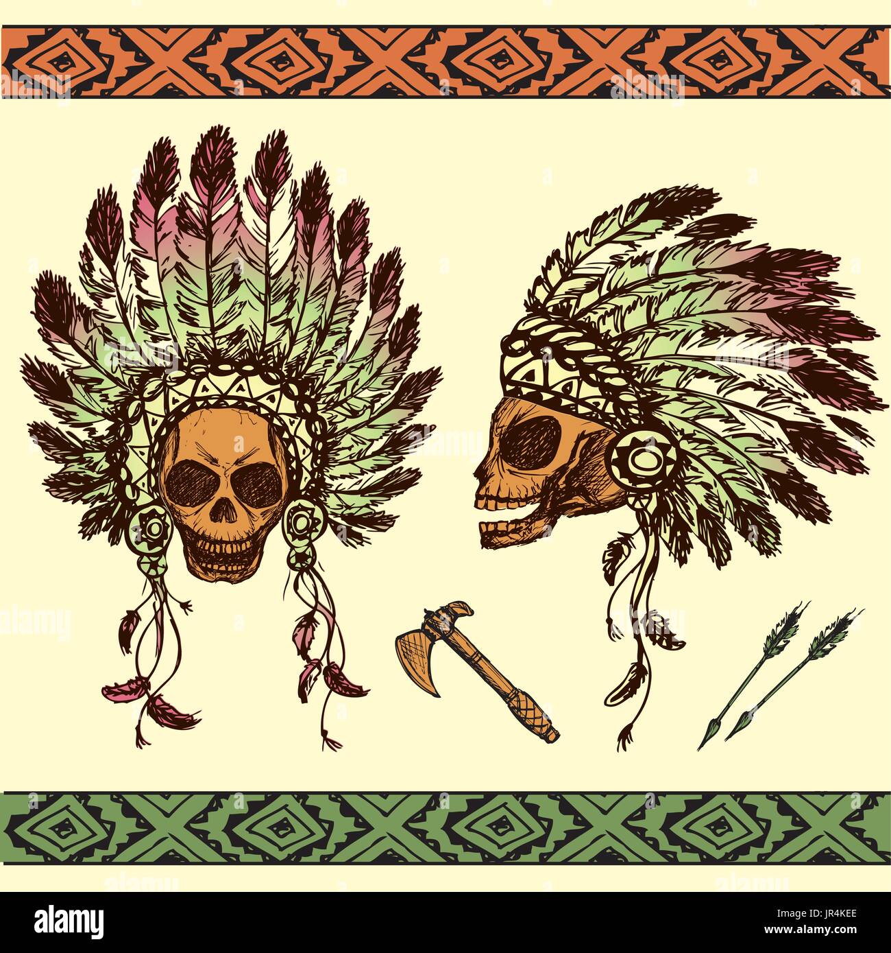 / Skull Native American Headdress Drawing : Premium Vector Hand Drawn Native American Indian Headdress With Human Skull And Two Tomahawks - Download 750 skull headdress stock illustrations, vectors & clipart for free or amazingly low rates!
